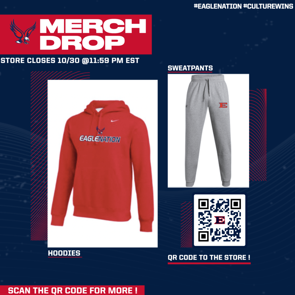 The 2022 Eagle Nation Online Merch Store is now open! This store has been put together by the High School Student Athletic Council and will close on Sunday, October 30, 2022(11:59 PM EDT).