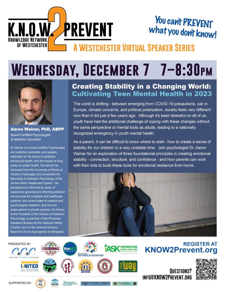 All parents and adult community members are invited to join STRONGER TOGETHER for a presentation by nationally renowned speaker, psychologist, and addiction specialist, Dr. Aaron Weiner.