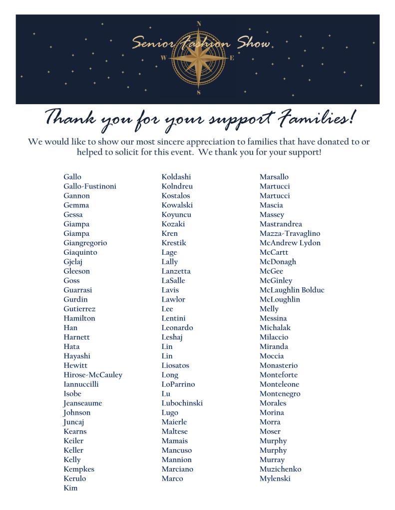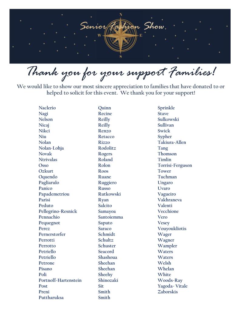 We’d like to take this opportunity to thank the EHS and EUFSD families who supported our fundraising efforts this school year. This one fundraising event takes dozens of volunteers and hundreds of generous community members to happen. The following pages are inside the program that becomes a keepsake for the seniors and their families.
