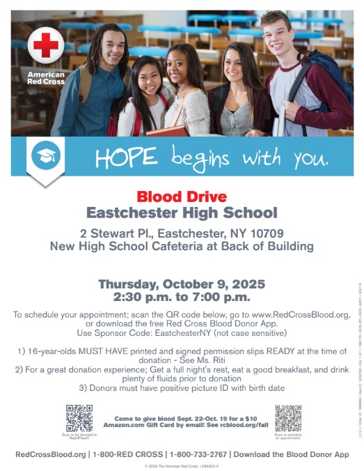 Upcoming Community Blood Drive @ EHS, 10/9, 2:30pm – 7:00pm Share this: Click to share on X (Opens in new window) X Click to share on Facebook (Opens in new window) Facebook Like Loading... Related