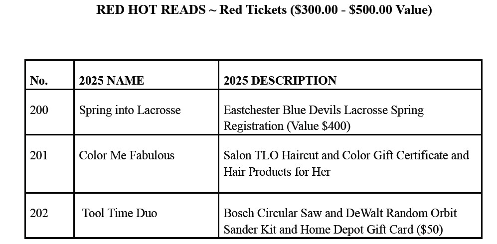 Please direct any questions to the Raffle Chairs, Toni Recine, hairgirl625@aol.com and Adrienne Notaro, anotaro403@gmail.com.